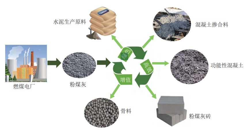 粉煤灰還可取代水泥熟料,用作水泥或混凝土摻合料,從而降低水泥熟料的消耗,同時提高混凝土的流動性、力學性能與耐久性能。