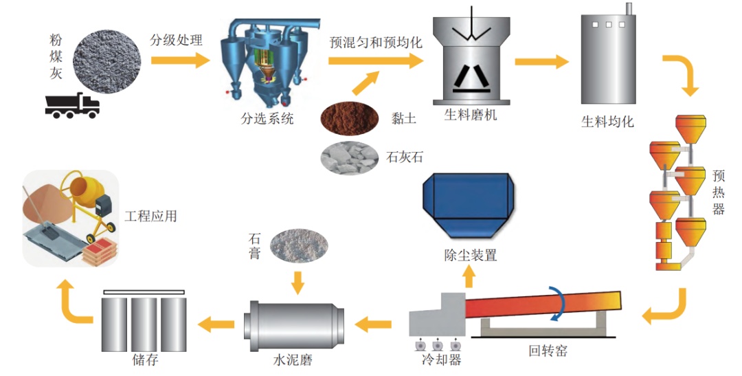 與傳統燒制水泥工藝相比,粉煤灰配料燒制水泥熟料工藝的燒成溫度可降低80~100℃,且相比黏土制成的硅酸鹽水泥,粉煤灰水泥具有質地細膩、不易開裂、干燥收縮率低、水化熱低、抗硫酸鹽性能好等優勢。