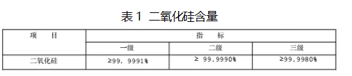 其中,行業標準SJ/T3328-2016電子產品用高純石英砂標準中規定了電子產品的技術條件、分析方法通則、灼燒矢量的測定、二氧化硅的測定、鐵的測定、銅的測定、鉻的測定、鋁的測定以及鉛的測定。標準適用于電子產品用高純石英砂,可用于制造半導體石英器件的管、棒、塊、板、片以及坩堝等器件,標準規定粒徑應在70μm~350μm,二氧化硅含量和雜質元素含量應該符合下列圖表(表1,表2)中要求。