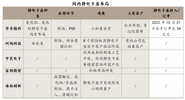 據不完全統計,2016-2022年國內主要晶圓廠采購美系和日系設備占比均約35%,其中美系薄膜沉積和刻蝕設備占比均在50%左右,美國在2022年10月實施半導體出口限制之后,其部分設備及零部件無法繼續出售給國內的客戶,如果陶瓷加熱盤和靜電卡盤等耗材類產品的替換受到阻礙,可能會導致產線無法正常運行,因此陶瓷零部件亟需國產替代,這給了國內陶瓷零部件廠商驗證和突破的機會。