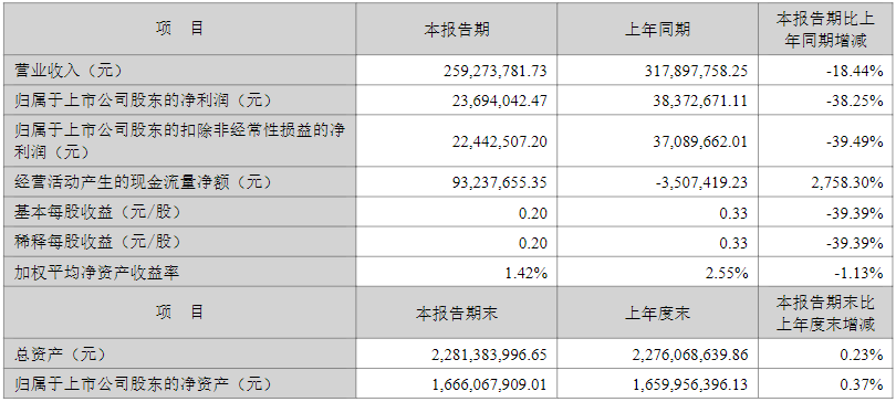 中國粉體網訊 近日,中旗新材發布2024年半年報。報告顯示,2024上半年,公司實現營業收入2.59億元,同比減少18.44%,實現歸屬于上市公司股東的凈利潤2369.75萬元,同比減少38.25%。