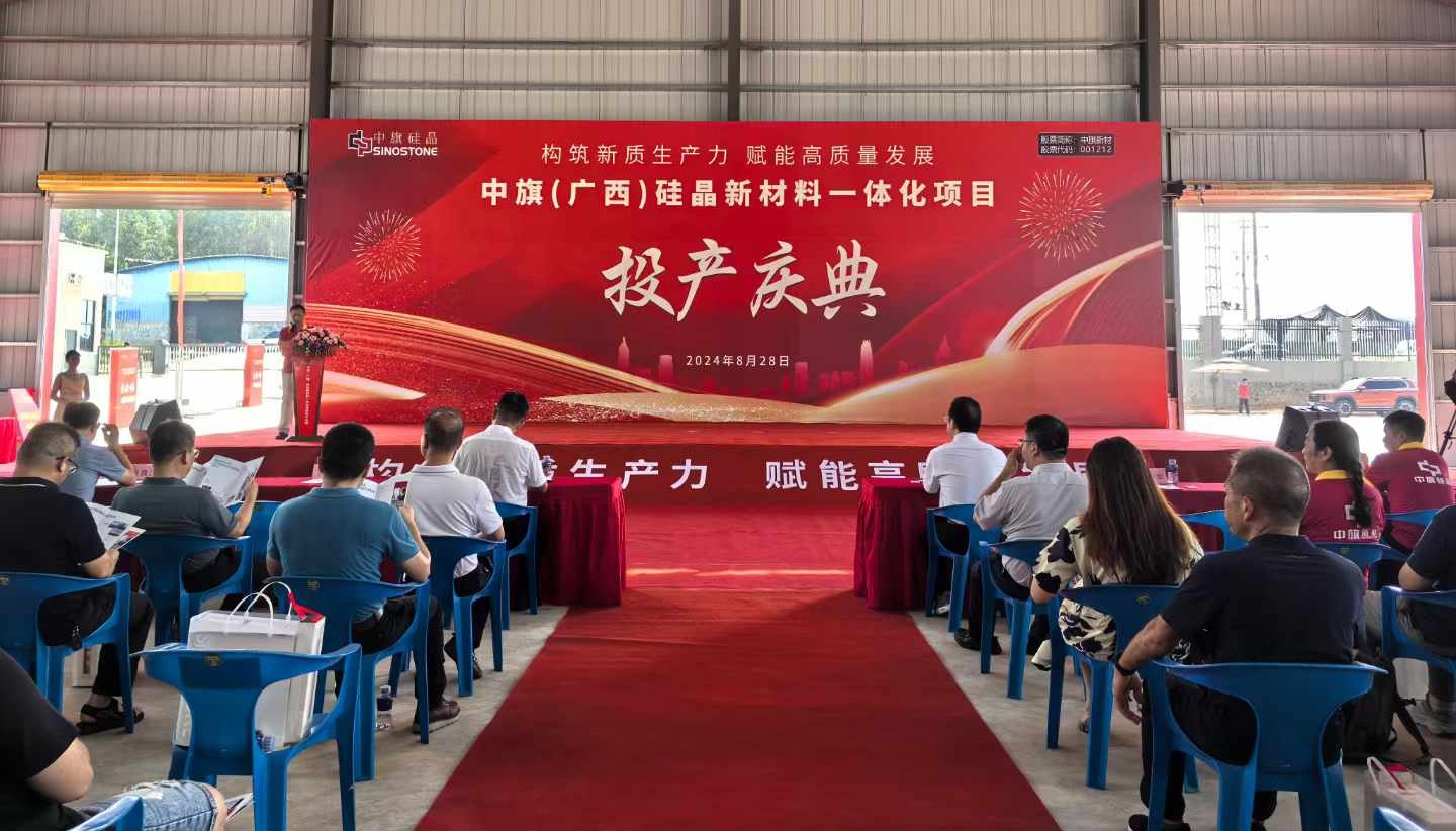 2024年8月28日,中旗(廣西)硅晶新材料一體化項目投產慶典隆重舉行。正式開啟中旗新材以自有礦山為基礎,硅基粉料為核心的企業“第二增長曲線”。