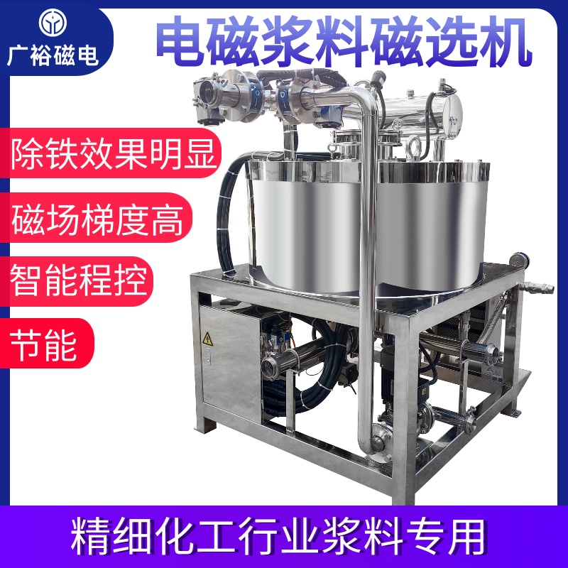 電磁漿料磁選機廣泛適用于鋰電正負極漿料如磷酸鐵鋰、碳酸鋰、錳酸鋰、三元材料、導電劑、石墨、碳粉、粘合劑等混漿中微細鐵粉和磁性金屬物的去除,(從而提高鋰電池的安全性和使用壽命)以及食品、醫藥、精細化工、電子、特種陶瓷等高要求行業漿料中的鐵粉、磁性物質的分離去除。
