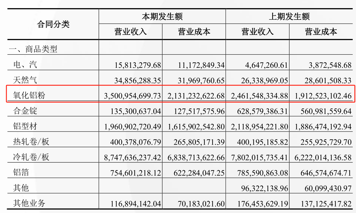 上半年南山鋁業(yè)實(shí)現(xiàn)營(yíng)業(yè)收入156.67億元,同比增長(zhǎng)8.05%;實(shí)現(xiàn)歸屬于上市公司股東凈利潤(rùn)21.89億元,同比增長(zhǎng)66.68%。其中,氧化鋁粉收入35.01億元,同比增長(zhǎng)42.23%,占營(yíng)業(yè)收入的22.35%;