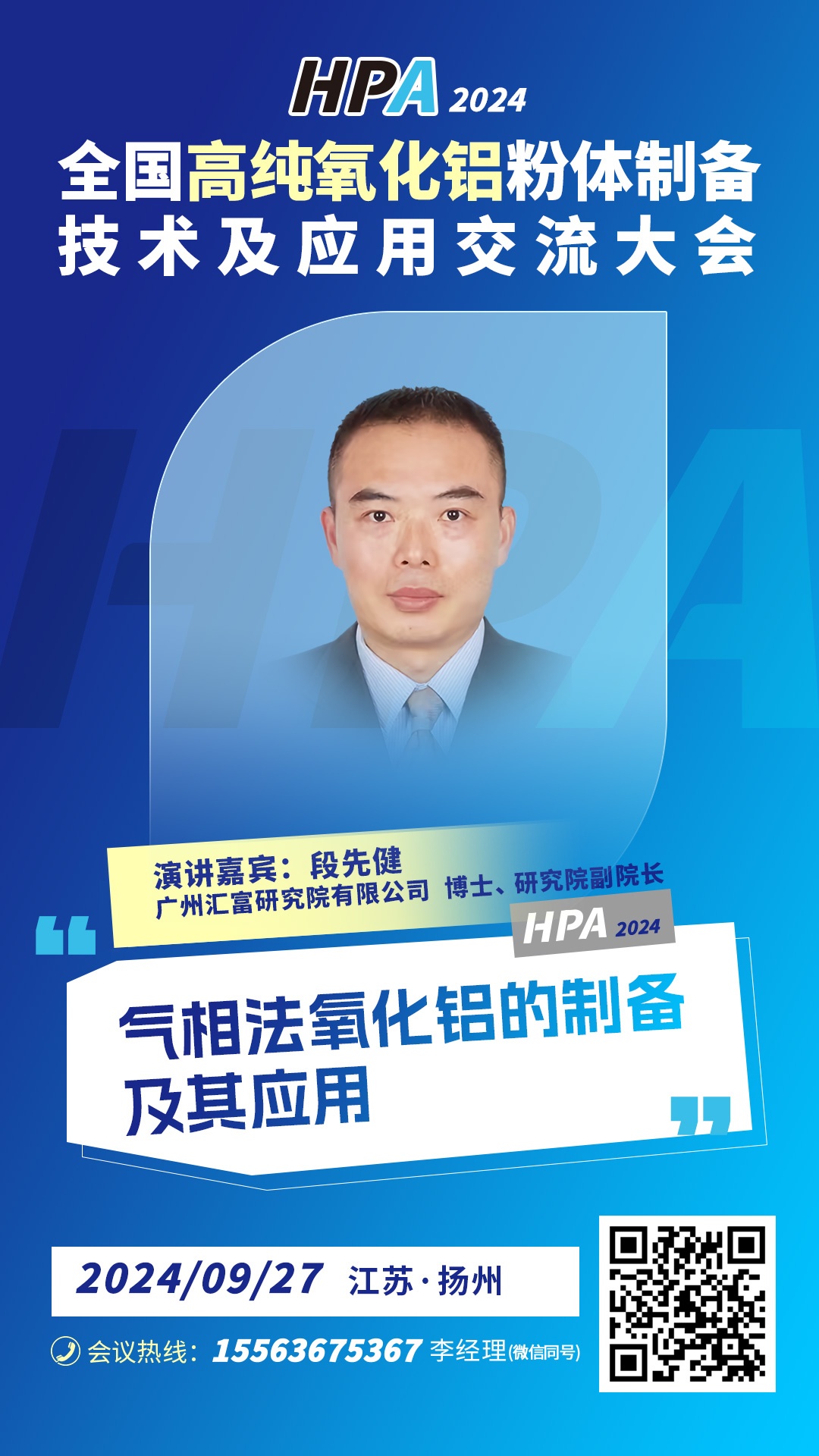 總之,氣相氧化鋁作為一種重要的功能材料,具有廣闊的應用前景和發展潛力。9月27日,中國粉體網將在江蘇·揚州舉辦2024全國高純氧化鋁粉體制備技術及應用交流大會。我們邀請到廣州匯富研究院有限公司研究院副院長段先健博士出席本次大會并作題為《氣相法氧化鋁的制備及其應用》的報告。
