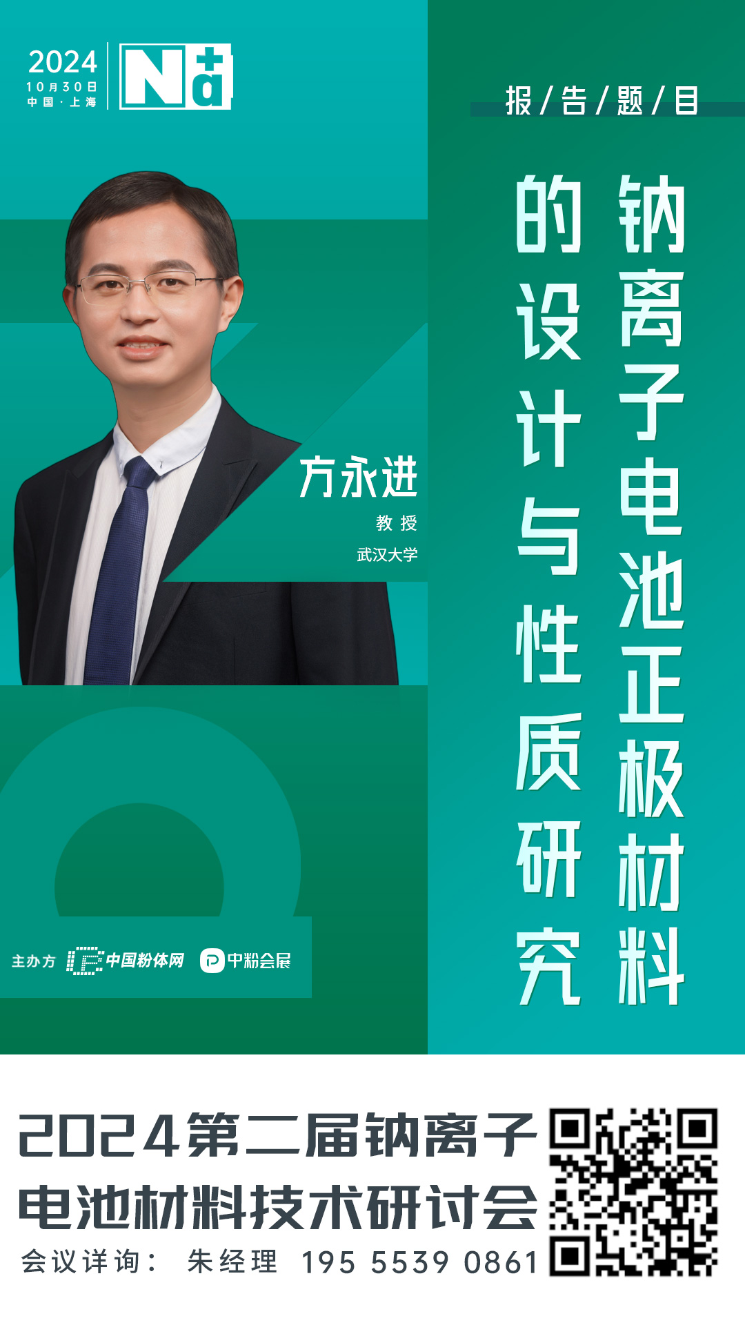 2024年10月29-31日在上海跨國采購會展中心,由北京粉體技術協會與柏德英思展覽(上海)有限公司聯合主辦2024第二屆鈉離子電池材料技術研討會。屆時,來自武漢大學的方永進教授將作題為《鈉離子電池正極材料的設計與性質研究》的報告。