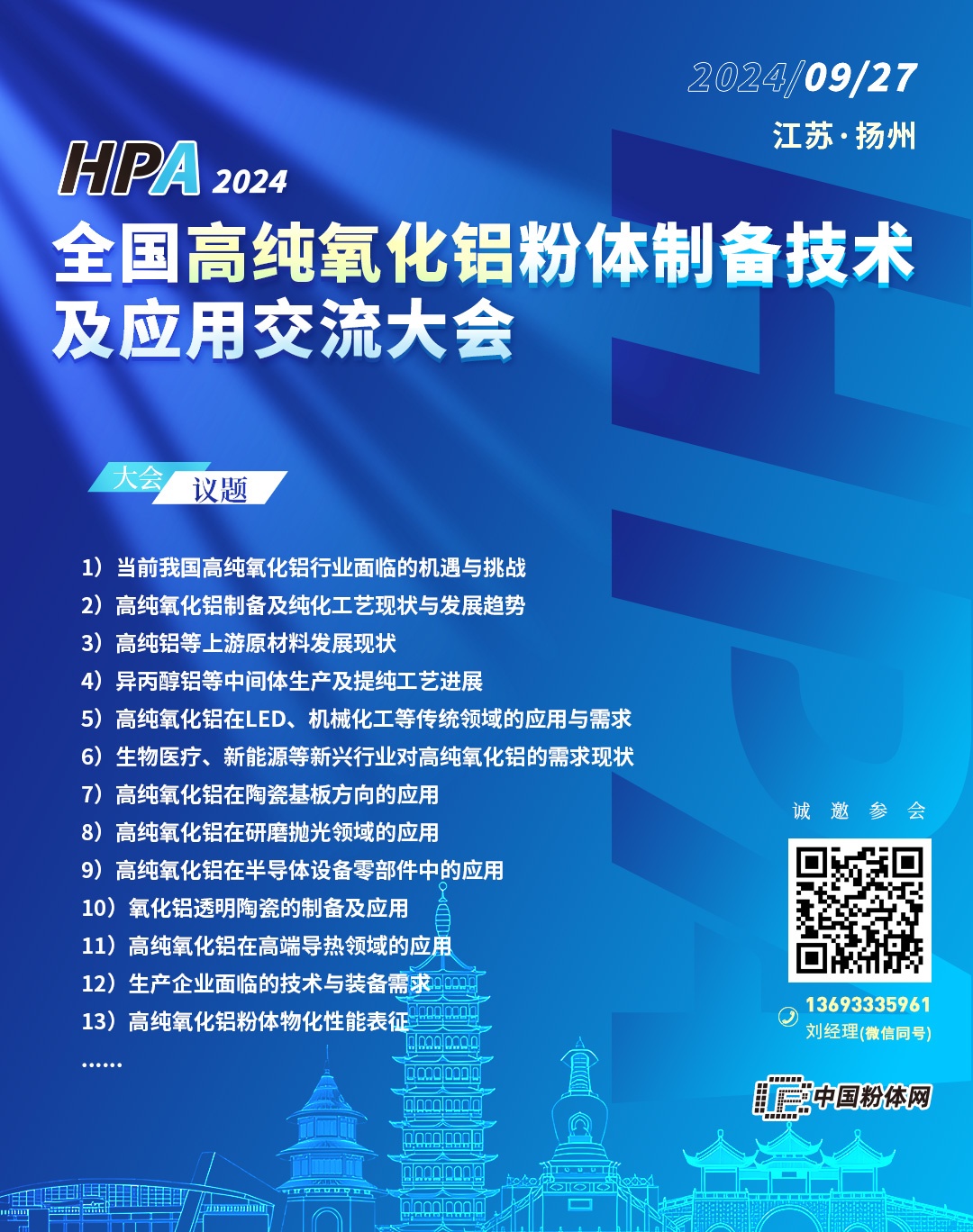 中國粉體網訊 高純氧化鋁粉體具有普通氧化鋁無法比擬的光、電、磁、熱和機械性能,是配套航天航空、半導體、核能、新能源、冶金、生物醫療、照明、機械、化工等眾多工程領域的重要新材料,是現代化工附加值最高、應用最廣泛的高端材料之一。在此背景下,中國粉體網將在江蘇·揚州舉辦2024全國高純氧化鋁粉體制備技術及應用交流大會,大會旨在搭建高純氧化鋁上下游技術交流、信息互通的溝通平臺,促進我國高純氧化鋁行業技術與產業發展突破。