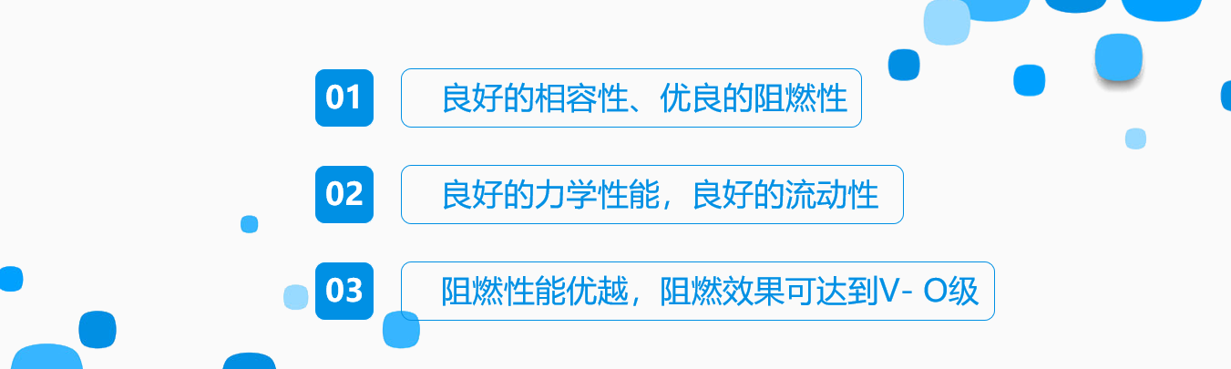 3.與基材樹脂有很好的相容性,是熱塑性樹脂及橡膠制品優(yōu)良的阻燃劑,膠黏劑中常用作添加型阻燃劑 或阻燃填料。