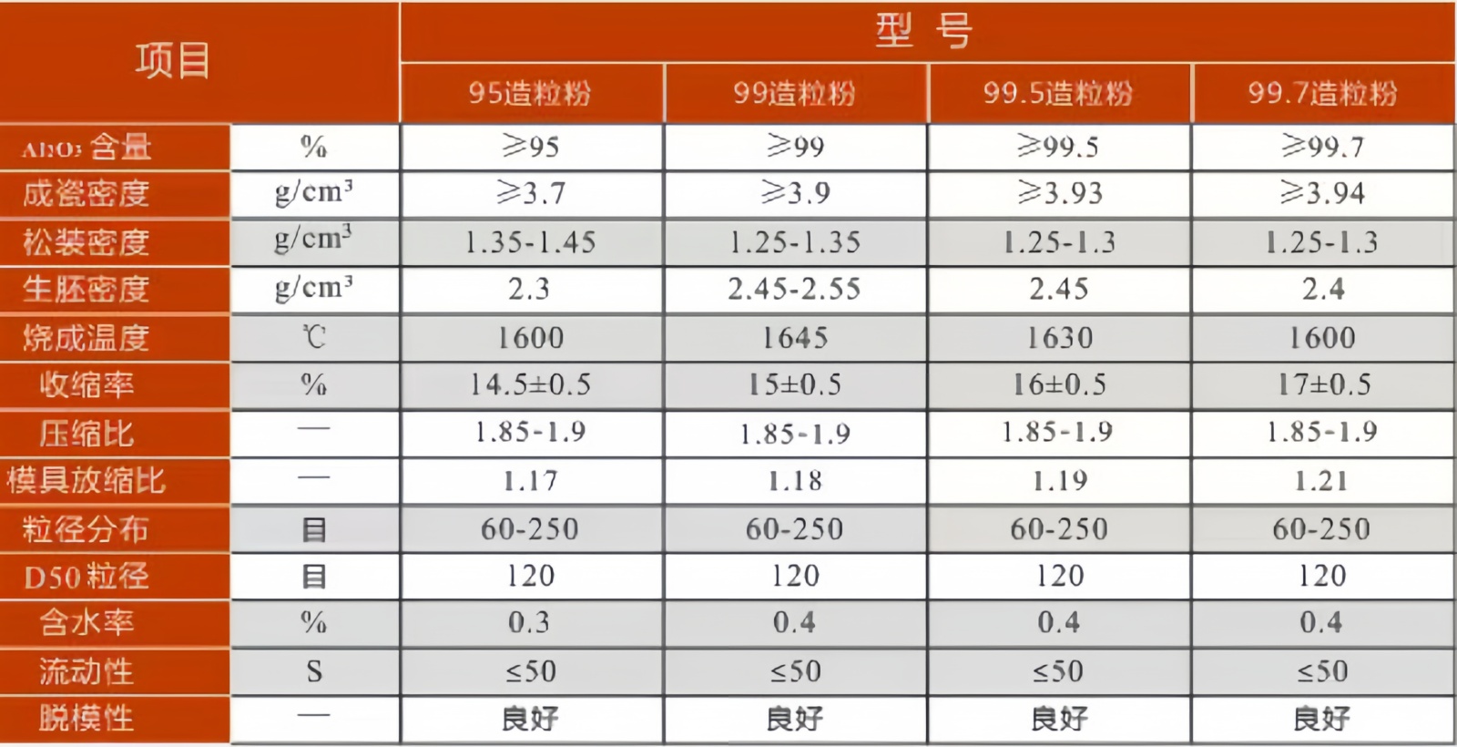 氧化鋁陶瓷造粒粉品種及技術(shù)指標