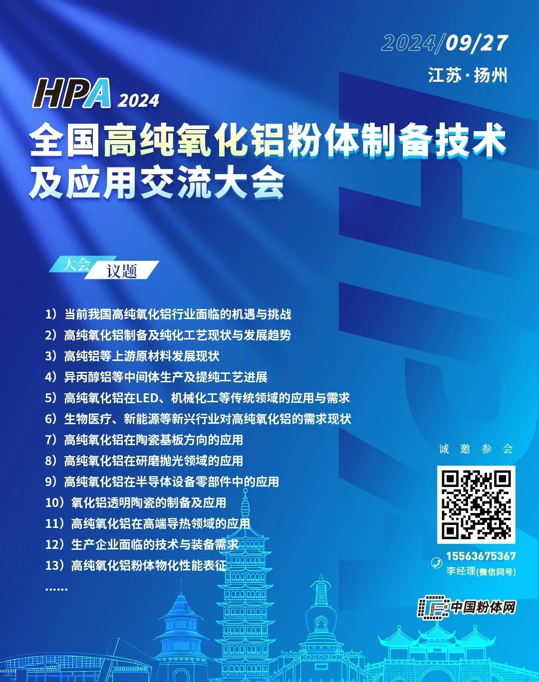 中國粉體網(wǎng)訊 高純氧化鋁粉體具有普通氧化鋁無法比擬的光、電、磁、熱和機械性能,是配套航天航空、半導體、核能、新能源、冶金、生物醫(yī)療、照明、機械、化工等眾多工程領域的重要新材料,是現(xiàn)代化工附加值最高、應用最廣泛的高端材料之一。在此背景下,中國粉體網(wǎng)將在江蘇·揚州舉辦2024全國高純氧化鋁粉體制備技術(shù)及應用交流大會,大會旨在搭建高純氧化鋁上下游技術(shù)交流、信息互通的溝通平臺,促進我國高純氧化鋁行業(yè)技術(shù)與產(chǎn)業(yè)發(fā)展突破。