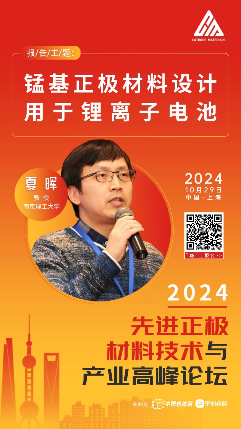 2024年10月29-31日在上海跨國采購會展中心,由北京粉體技術協會與柏德英思展覽(上海)有限公司聯合主辦2024先進正極材料技術與產業高峰論壇。屆時,來自南京理工大學的夏暉教授將作題為《錳基正極材料設計用于鋰離子電池》的報告。