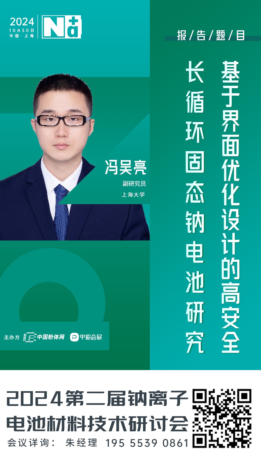 2024年10月29-31日在上海跨國采購會展中心,由北京粉體技術協會與柏德英思展覽(上海)有限公司聯合主辦2024第二屆鈉離子電池材料技術研討會。屆時,來自上海大學的馮吳亮副研究員將作題為《基于界面優化設計的高安全長循環固態鈉電池研究》的報告。固態鈉電池的關鍵科學與技術問題均在于界面穩定性,本報告將從界面相調控、電極與固體電解質組分優化入手,介紹提升界面穩定性的重要策略。與此同時,結合鈉枝晶生長、活性鈉消耗、高阻抗等行業痛點,提供優化設計思路,為構筑高安全、長循環,并同時兼具高比能特征的固態鈉電池提供設計與發展思路。