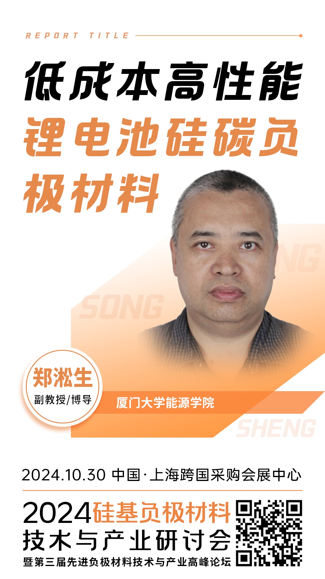 2024年10月29-31日在上海跨國采購會展中心,由北京粉體技術協會與柏德英思展覽(上海)有限公司聯合主辦2024硅基負極材料技術與產業研討會暨第三屆先進負極材料技術與產業高峰論壇。屆時來自廈門大學能源學院的副教授/博導鄭淞生將作題為《低成本高性能鋰電池硅碳負極材料》的報告。報告主講人將介紹其團隊采用低成本微米硅為原料,耦合低成本工藝技術,成功生產出高性能的硅碳負極材料的方法。