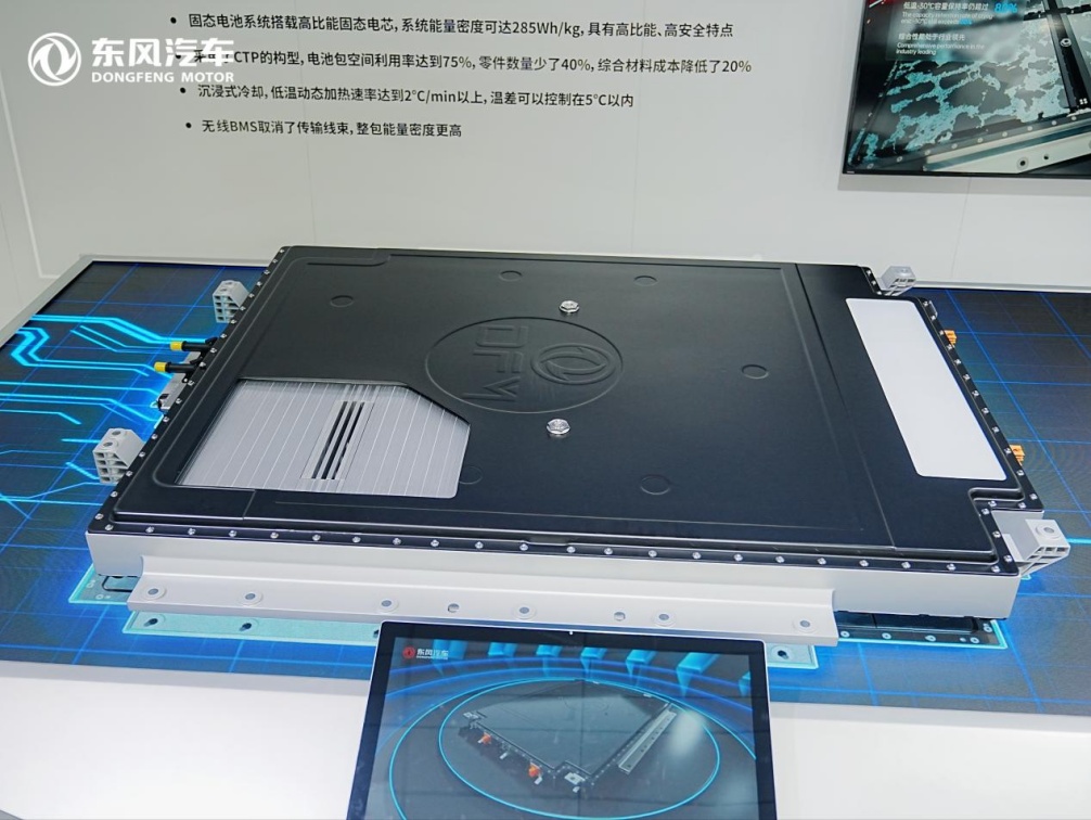 近日,東風汽車還展示了新一代固態電池,系統能量密度達285Wh/kg。該電池采用高比能固態電芯,具備高比能和高安全性,并采用CTP構型,提高了空間利用率,降低了材料成本。此外,沉浸式冷卻技術和無線BMS系統進一步提升了性能和可靠性。