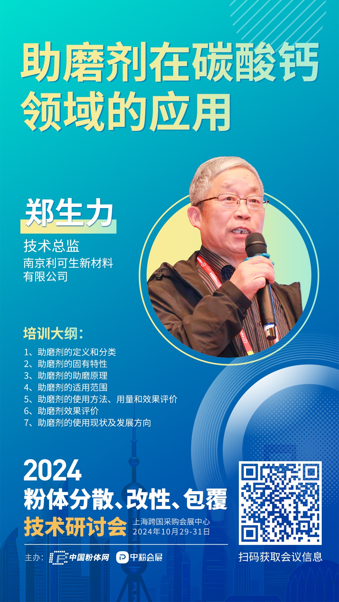 2024年10月30日在上海跨國采購會展中心,由北京粉體技術協會與柏德英思展覽(上海)有限公司聯合主辦“2024粉體分散、改性、包覆技術研討會”。屆時南京利可生新材料有限公司技術總監鄭生力作題為《助磨劑在碳酸鈣領域的應用》的報告,為參會嘉賓全面講解助磨劑的定義和分類、固有特性、助磨原理、適用范圍、用法用量以及未來發展等內容。