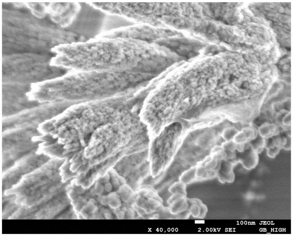 與現有技術相比,本發明的制備方法具有操作簡單、原料易得的優點,所制備的麥穗狀微納米碳酸鈣形貌均一,分散度良好,具有較高的比表面積。