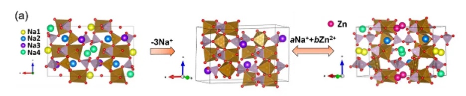 圖:Na4Fe3(PO4)2P2O7在第一次充電和隨后的循環過程中的結構演變