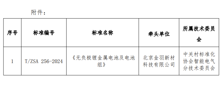 《無負極鋰金屬電池及電池組》中關村標準發布.金羽新能