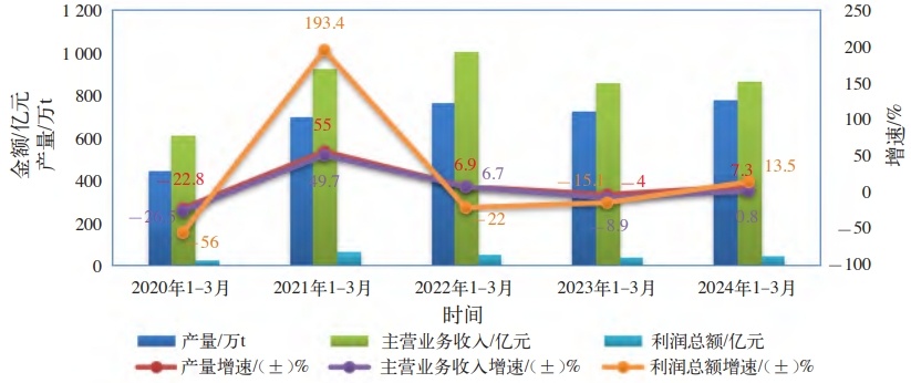 2020-2024年一季度中國涂料行業經濟運行走勢圖