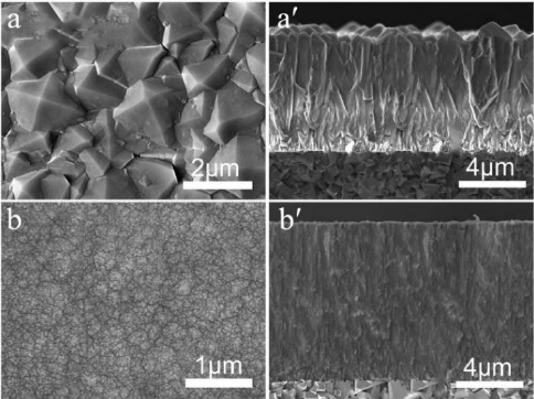 (a,aʹ)微米金剛石涂層;(b,bʹ)納米金剛石涂層的表面和截面形貌