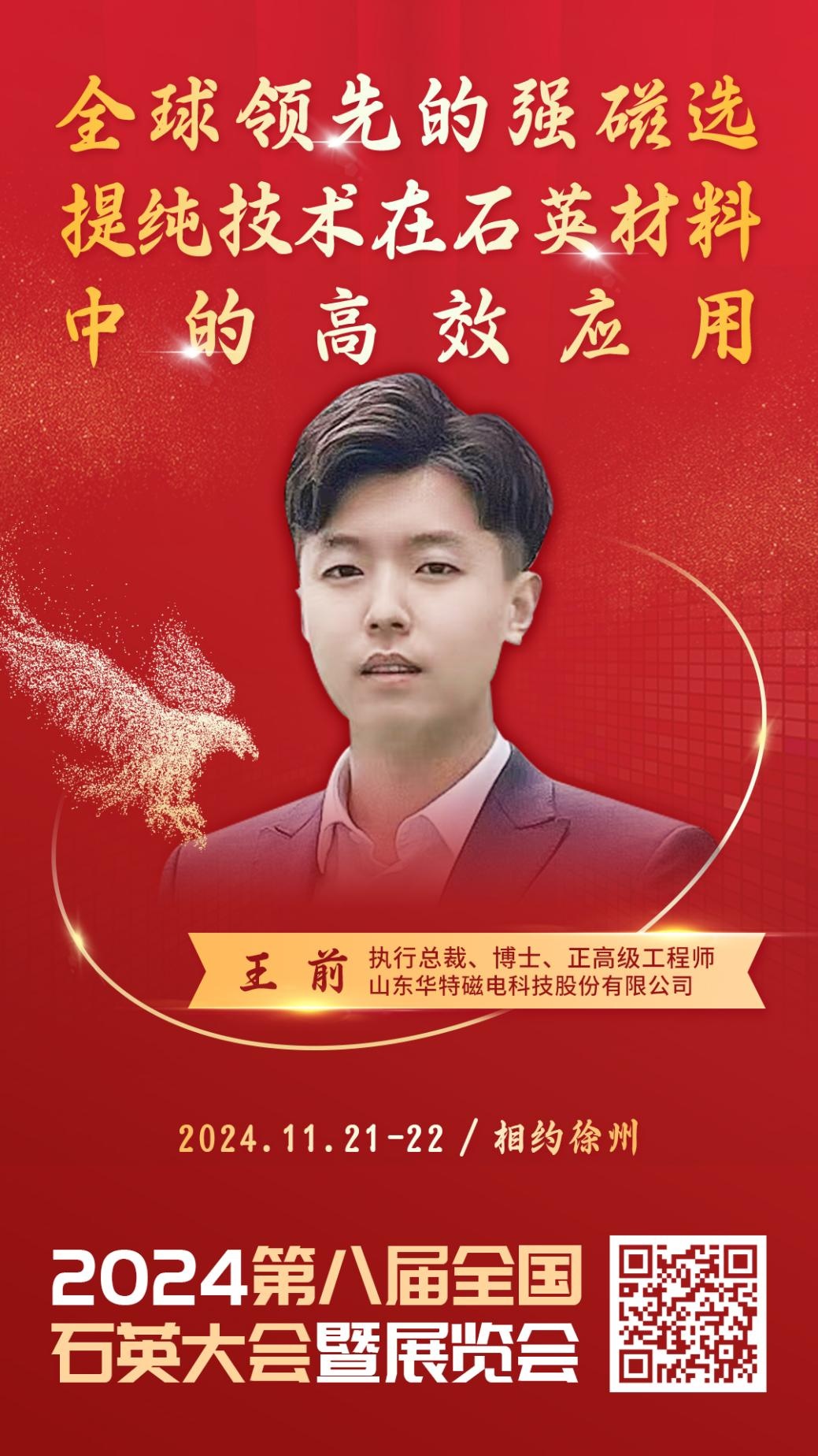 2024年11月21-22日,由中國粉體網(wǎng)主辦的“2024(第八屆)全國石英大會暨展覽會”將在江蘇徐州召開,山東華特磁電科技股份有限公司的執(zhí)行總裁王前將做《全球領(lǐng)先的強磁選提純技術(shù)在石英材料中的高效應(yīng)用》的報告,屆時,他將結(jié)合公司產(chǎn)品應(yīng)用案例,詳細解讀全球領(lǐng)先的強磁選提純技術(shù)在石英材料中的高效應(yīng)用。