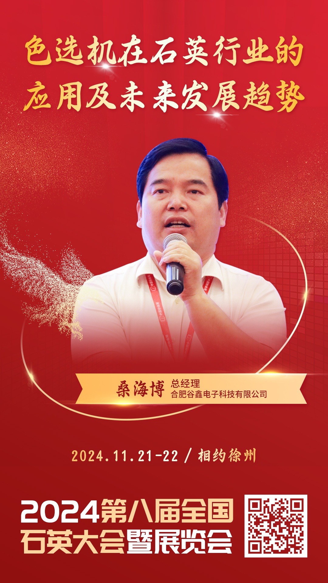 2024年11月21-22日,由中國(guó)粉體網(wǎng)主辦的“2024(第八屆)全國(guó)石英大會(huì)暨展覽會(huì)”將在江蘇徐州召開(kāi),合肥谷鑫電子科技有限公司的總經(jīng)理桑海博將做《色選機(jī)在石英行業(yè)的應(yīng)用及未來(lái)發(fā)展趨勢(shì)》的報(bào)告,屆時(shí),他將結(jié)合公司產(chǎn)品應(yīng)用案例,詳細(xì)解讀色選機(jī)在石英行業(yè)的應(yīng)用及未來(lái)發(fā)展趨勢(shì)。