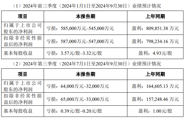 中國粉體網訊  10月24日,天齊鋰業發布2024年前三季度業績預告,預計2024年前三季度凈虧損54.5億元-58.5億元,上年同期盈利80.99億元。預計第三季度凈虧損3.2億元-6.4億元,上年同期盈利16.46億元。