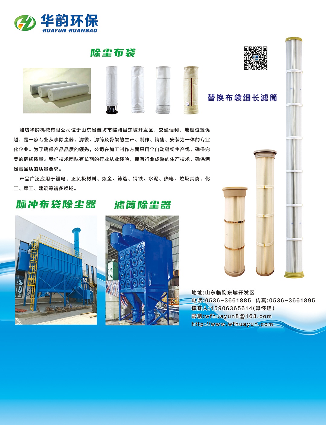 濰坊華韻機械有限公司是一家專業從事除塵布袋、除塵濾筒、除塵濾芯、除塵濾袋及布袋除塵器的生產、銷售、安裝為一體的專業化企業。為了確保產品的品質.公司在加工制作方面采用全自動縫紉生產線,確保縫紉質量。我們技術團隊有長期的行業從業經驗,擁有行業成熟的生產技術,確保滿足高品質的質量要求。公司生產的多種濾材的工業除塵濾筒,靜電噴涂粉末回收濾芯,以及除塵設備和涂裝設備中的其他配件。