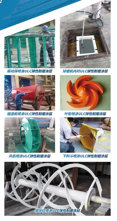 公司的產品主要是噴涂成型的高分子彈性體,產品具有很強的觸變性,可以噴任意曲面而不易流掛,輕松就能噴高膜厚,噴涂工具可以用簡單空氣噴壺就可以施工,大面積施工建議用大功率的無氣噴涂設備施工,根據不同的底材選擇相對應的底涂,可提供高附著力,附著力可以大于涂層本身的強度,根據客戶特殊工況需要可以開發不同硬度和拉伸率的產品。