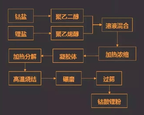 而液相合成法的主要思路是將鋰鹽和鈷鹽加入金屬醇鹽,通過溶液形成溶膠,再形成凝膠,隨后將凝膠進行熱處理后得到鈷酸鋰。