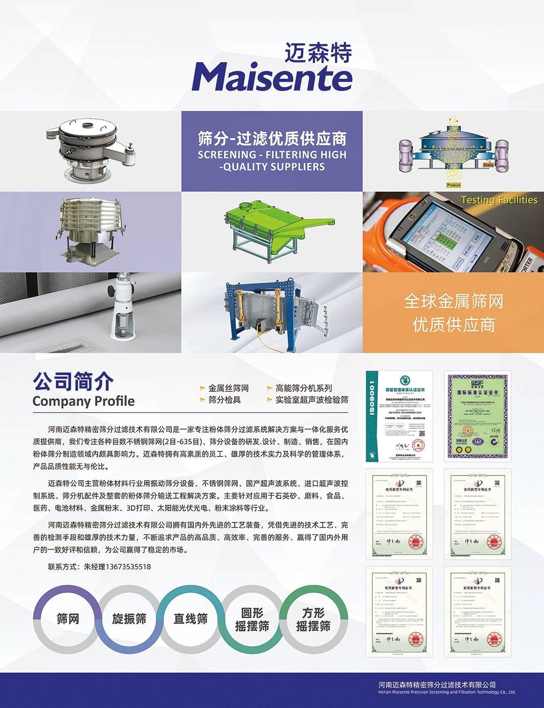 中國粉體網于將于2024年11月21-22號江蘇省徐州市舉辦“ 2024(第八屆)全國石英大會暨展覽會 河南邁森特精密篩分過濾技術有限公司邀您一同參加。