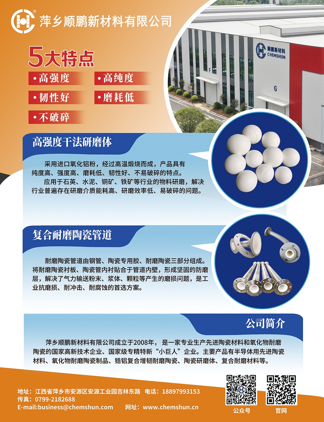 萍鄉(xiāng)順鵬新材料有限公司成立于2008年,位于萍鄉(xiāng)市安源區(qū)安源工業(yè)園,是一家專業(yè)生產(chǎn)耐磨新材料的國(guó)家高新技術(shù)企業(yè)、國(guó)家級(jí)專精特新小巨人企業(yè),產(chǎn)品銷往全球60多個(gè)國(guó)家和地區(qū),F(xiàn)有全資子公司萍鄉(xiāng)順鵬工程技術(shù)有限公司、萍鄉(xiāng)市置順陶瓷有限公司,控股公司江西中科特瓷新材料有限公司。
