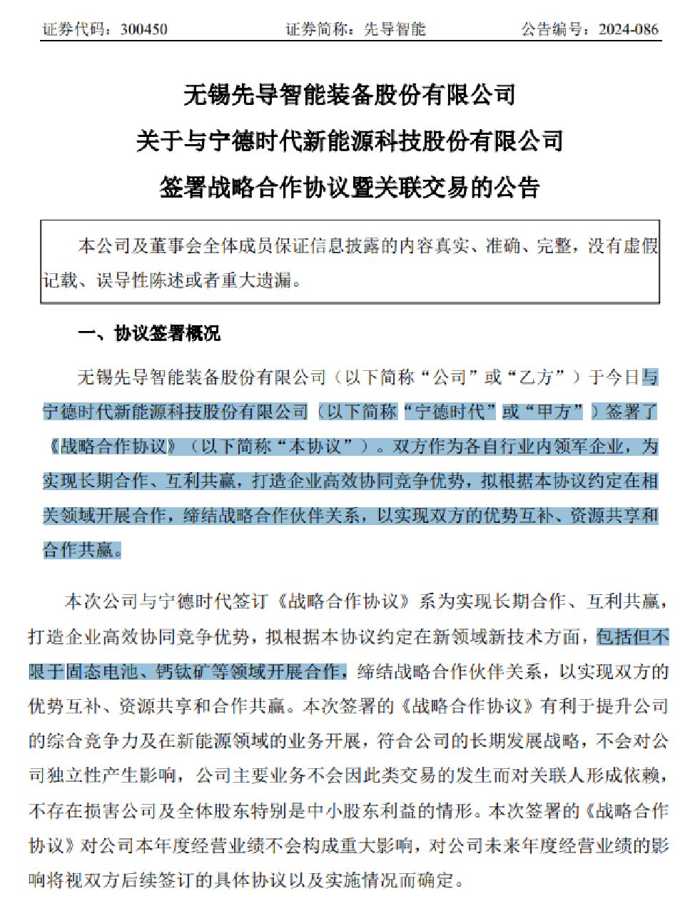 中國粉體網訊 11月29日,無錫先導智能裝備股份有限公司(簡稱:先導智能)發(fā)布公告稱,公司與寧德時代新能源科技股份有限公司(簡稱:寧德時代)簽署了《戰(zhàn)略合作協(xié)議》。雙方作為各自行業(yè)內領軍企業(yè),為實現長期合作、互利共贏,打造企業(yè)高效協(xié)同競爭優(yōu)勢,擬根據本協(xié)議約定在相關領域開展合作,締結戰(zhàn)略合作伙伴關系,以實現雙方的優(yōu)勢互補、資源共享和合作共贏。
