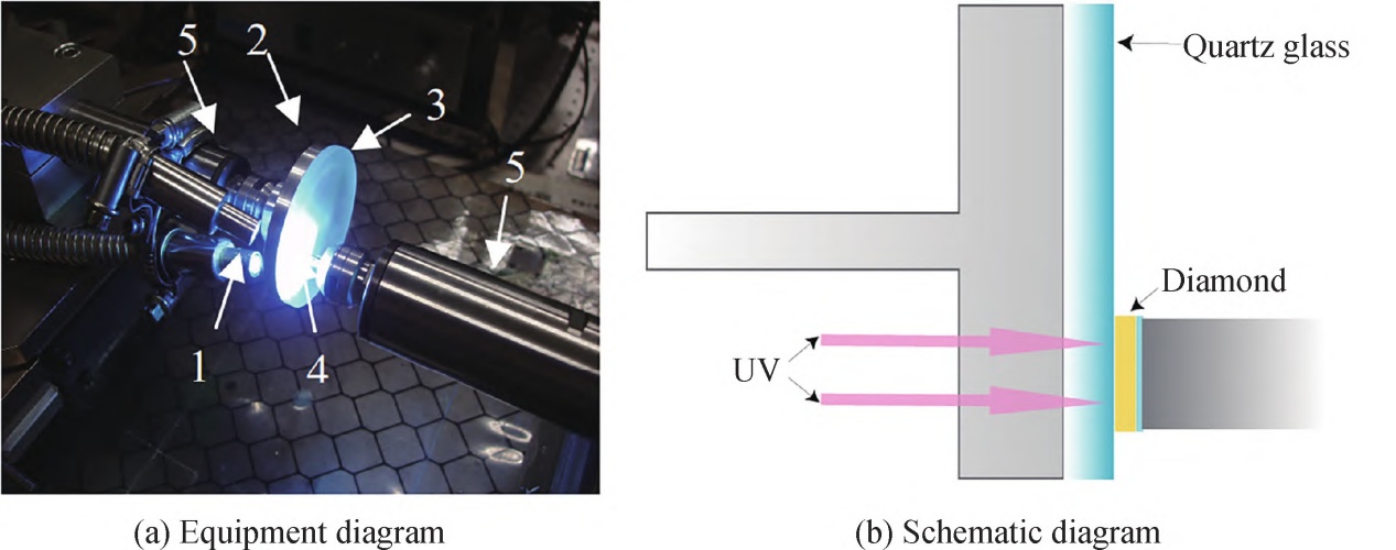 該方法用紫外光(UV)輻照拋光單晶金剛石,用石英拋光盤對單晶金剛石進行拋光,紫外光可以透過石英拋光盤照射在金剛石表面。光催化輔助化學機械拋光可提高金剛石表面質量,達到納米級粗糙度。但相比傳統的化學機械拋光技術,設備復雜度較高,無法滿足大規模生產的需求,需要進一步地研究和優化,以提高其實際應用能力。