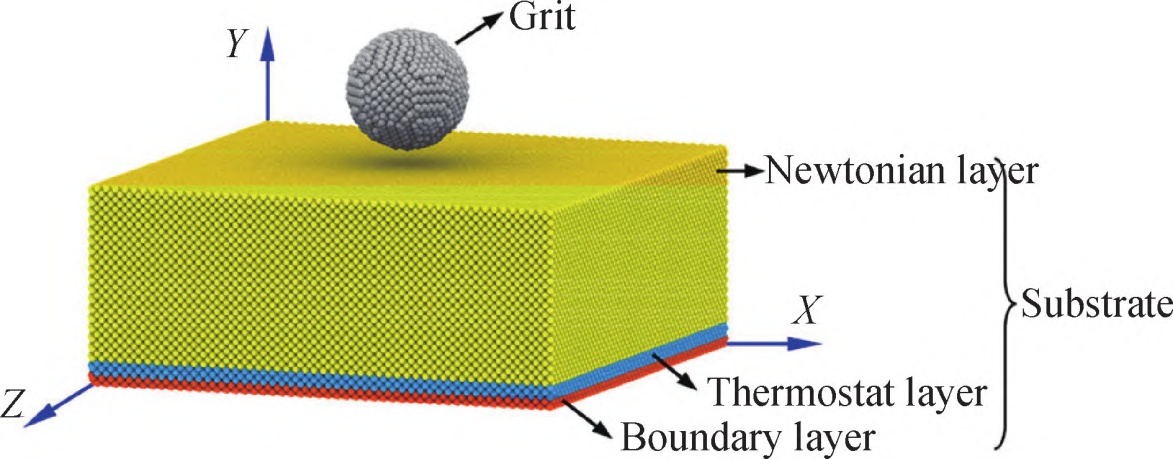 分子動力學( molecular dynamics, MD) 模擬可以通過高時間和空間分辨率可視化材料去除的細節,是一種適合研究原子級材料去除機理的方法。分子動力學模擬方法是一種包含例如幾何、速度和力等內在信息的綜合物理模型,這些可以用來推導化學機械拋光中原子運動軌跡、溫度和應力等。因此,分子動力學對于研究金剛石化學機械拋光的機理有著重要的意義。
