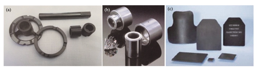 無壓燒結(jié)碳化硅產(chǎn)品:(a)陶瓷密封件;(b)陶瓷軸承;(c)防彈板