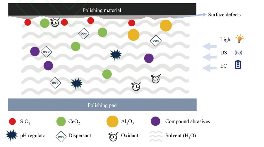 半導(dǎo)體晶圓片 CMP 拋光液是半導(dǎo)體制造過程中的關(guān)鍵材料之一,通過拋光液中化學(xué)試劑的化學(xué)腐蝕和機械磨削的雙重耦合作用,在原子水平上去除表面缺陷,獲得全局平坦化表面,因此,拋光液對于提高晶圓表面平整度和光潔度起著至關(guān)重要的作用。