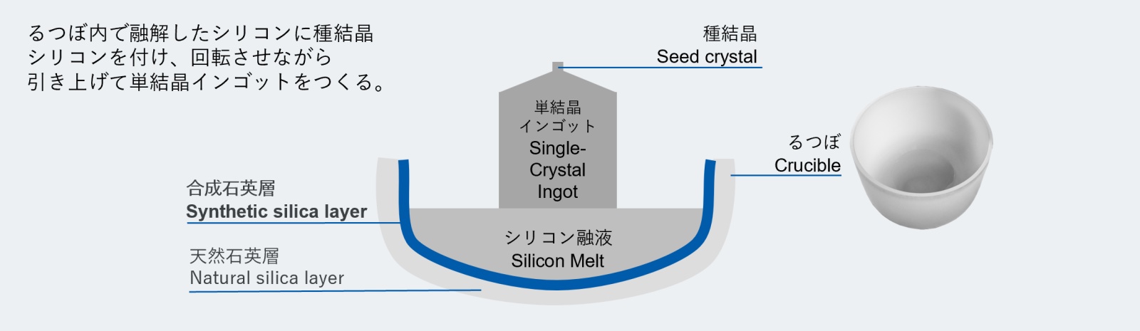 合成砂產品在石英坩堝中的使用示意圖