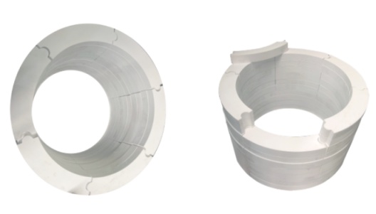 翟經理:首先,它的耐溫性能非常出色,最高使用溫度1800℃,長期耐溫1750℃,耐高溫性能優于進口氧化鋁纖維板;其次,耐腐蝕性高,耐酸堿侵蝕性能優于氧化鋁纖維板;此外,該材料的強度較高,相較于市場上現有的氧化鋁纖維板,其強度更為優越,常溫耐壓強度~6MPa,高溫耐壓強度~3MPa,強度顯著優于纖維板;在加工性能方面,該材料易磨銑、易切割、易開孔,加工方便,安裝簡單;最后,該材料還具有壽命長和節能的特點,同等工況下該材料的使用壽命是纖維板的數倍。節能效果與輕質纖維板接近,比空心球磚節能50%以上。