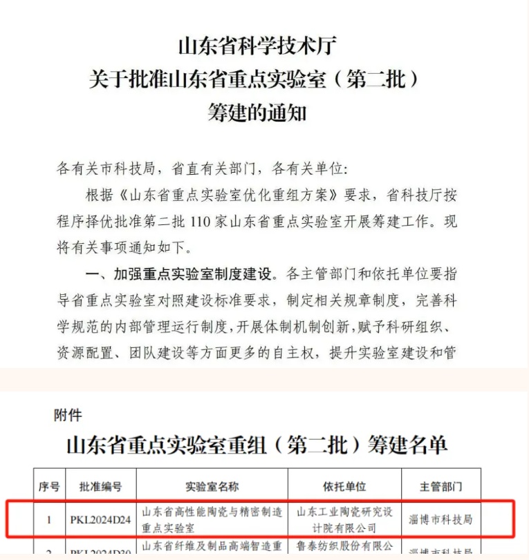 喜訊!山東省高性能陶瓷與精密制造重點實驗室獲批籌建