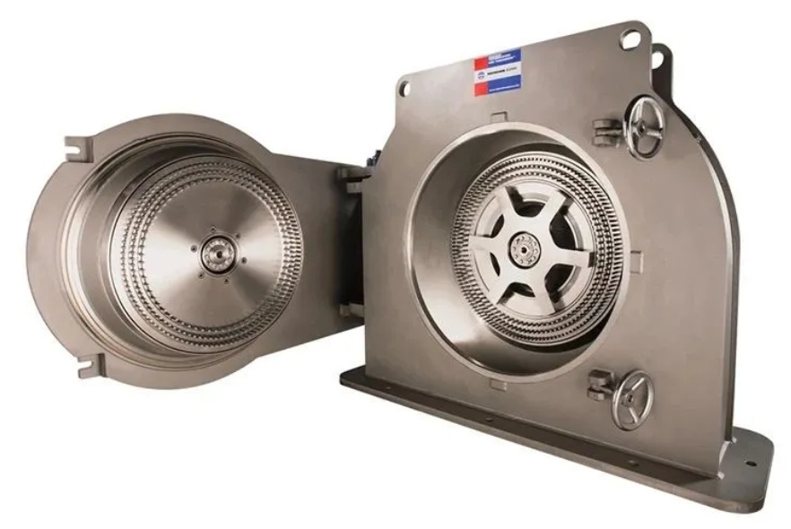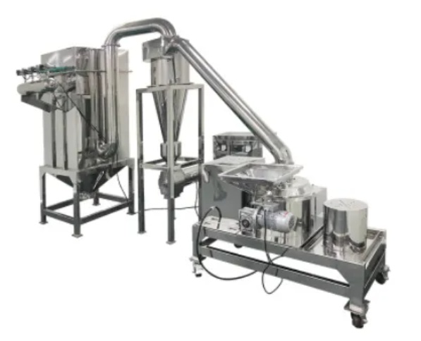 設(shè)備特別適用于脆性物料的超微粉碎,物料的硬度在1-3級為最佳,如石墨、高領(lǐng)土、白炭黑等高金屬礦。由于微粉碎機(jī)的轉(zhuǎn)速高,進(jìn)風(fēng)量大,適用于熱敏性物料如合成樹脂、硫磺、農(nóng)藥、食品、中草藥、磷酸鹽、碳酸鎂等物品的粉碎。CXG系列粉碎機(jī)是公司自行設(shè)計(jì)、開發(fā)研制的一種高效微粉碎機(jī),物料的粉碎與粉粒的分級裝于同一機(jī)體內(nèi),而各自獨(dú)立運(yùn)轉(zhuǎn)。該機(jī)具有功能全、結(jié)構(gòu)緊湊、技術(shù)性能穩(wěn)定、耗電省、適應(yīng)范圍廣、不產(chǎn)生過度粉碎、可調(diào)節(jié)粉體細(xì)度、維修簡便等特點(diǎn),廣泛適用于化工、染料、涂料、醫(yī)藥、食品等各行業(yè)不同領(lǐng)域中的超細(xì)粉碎,物料的粉碎、分級至成品是在同一密閉的系統(tǒng)中進(jìn)行的,經(jīng)除塵處理,無污染,是當(dāng)前環(huán)保的理想設(shè)備。3.XXJ型系列香辛料、油性料專用粉碎機(jī)(分體式)設(shè)備利用固定齒盤與活動錘片間的相對運(yùn)動,使物料在機(jī)腔內(nèi)被沖擊剪切而快速獲得粉碎。粉碎后的物料經(jīng)離心力和引風(fēng)機(jī)的作用,自動進(jìn)入旋風(fēng)分離器,成品經(jīng)過出料風(fēng)機(jī)收集,粉塵自動吸入除塵箱,經(jīng)過布袋過濾、回收,降低物料的損耗率,有效改善工作環(huán)境。臥式螺帶混合機(jī)由U形筒體、螺帶攪拌葉片和傳動部件組成;螺帶狀葉片一般做成雙層,工作時外層螺帶將物料從兩側(cè)向中央?yún)R集,內(nèi)層螺帶將物料從中央向兩側(cè)輸送,形成對流混合。攪拌部件還可以制作成槳葉式或增加飛刀,適應(yīng)不同的物料。筒蓋可做成拱形或全開式,拱形可以承壓,全開式方便清洗設(shè)備內(nèi)部。設(shè)備的優(yōu)點(diǎn)是適用范圍廣、混合均勻度高、混合時間短、裝載系數(shù)大。磨內(nèi)兩塊針盤以相反的方向高速運(yùn)轉(zhuǎn)。產(chǎn)品的細(xì)度通過調(diào)節(jié)針盤的轉(zhuǎn)速來實(shí)現(xiàn)。該設(shè)備清洗非常方便,只需打開磨門即可。物料不宜超過莫氏硬度3。無篩網(wǎng)設(shè)計(jì),出料流暢,產(chǎn)能高,運(yùn)行成本低;可采用雙動力,達(dá)到200m/s以上的線速度,獲得更大粉碎力。