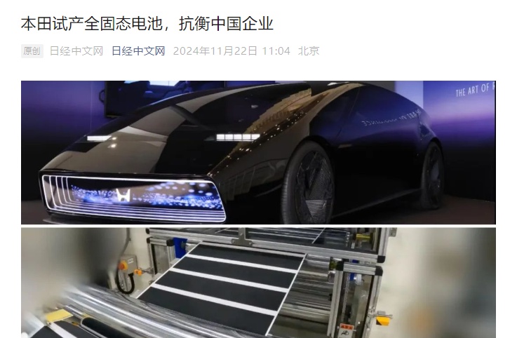 (4)本田從2025年1月開始試生產純電動汽車(EV)用的“全固態電池”。該生產線不僅用于驗證電池的生產工藝,還將對電芯規格、量產技術,以及成本控制等方面進行深度優化。