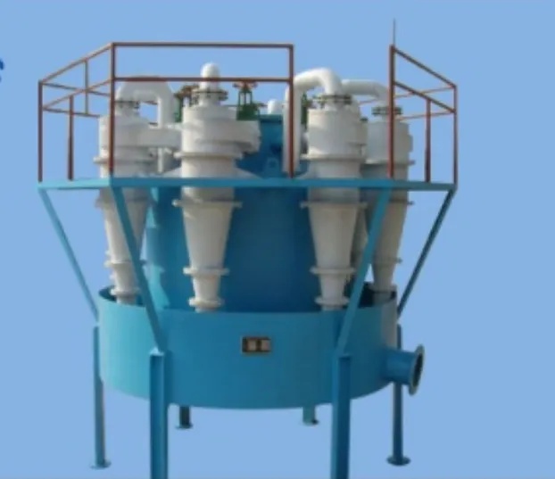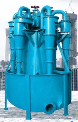 旋流器是利用離心力來(lái)加速礦粒沉降的分級(jí)設(shè)備,它需要壓力給礦,消耗動(dòng)力大,但是占地面積小,價(jià)格偏低,工作處理量大,分級(jí)效率高,通過旋流器可以獲得很細(xì)的溢流產(chǎn)品。