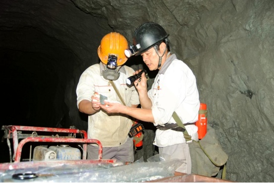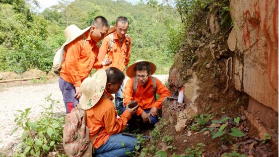 圖為地質技術員在查看礦體露頭