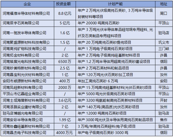 2024年河南石英項目(中國粉體網不完全統計)
