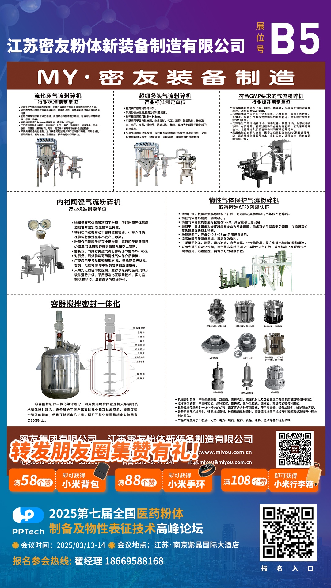 從第七屆全國醫藥粉體制備及物性表征技術高峰論壇組委會獲悉,本屆會議將于2025年3月13-14日在南京舉辦。江蘇密友粉體新裝備制造有限公司作為參展單位邀請您共同出席。