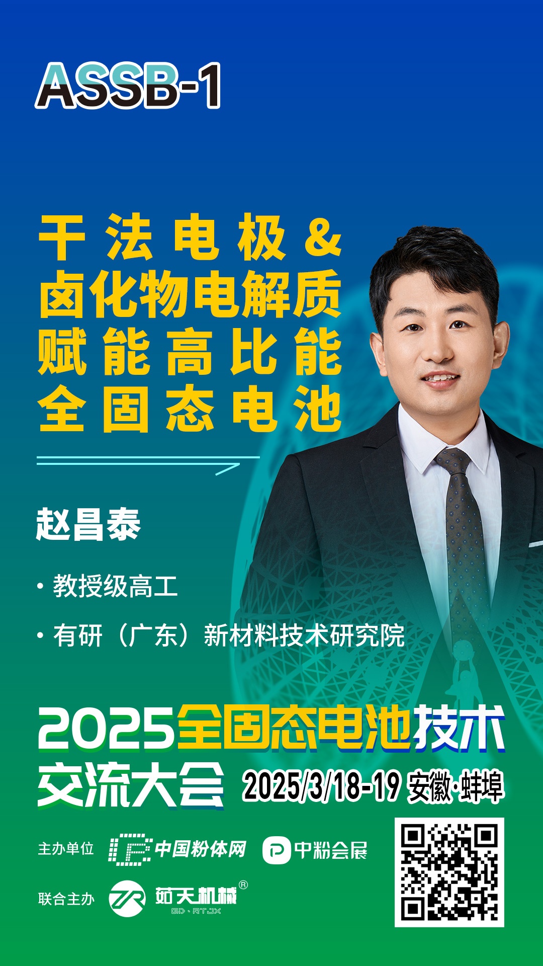 針對固態電池相關的技術、材料、市場及產業等方面的問題,中國粉體網將于2025年3月18-19日在安徽·蚌埠舉辦2025全固態電池技術交流大會暨第一屆干法電極技術研討會。為致力于固態電池技術開發的企業,科研院校,以及新能源汽車、儲能、消費電子等終端企業提供信息交流的平臺,開展產、學、研合作,助推固態電池產業化發展。屆時,來自有研(廣東)新材料技術研究院的趙昌泰教授級高級工程師將作題為《干法電極&鹵化物電解質賦能高比能全固態電池》的報告。