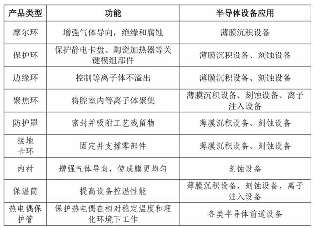 在半導體領域,氧化鋁陶瓷零部件是半導體設備關鍵零部件之一,其大部分被用于離晶圓更近的腔室內,在半導體設備中按用途分類,主要分為圓環圓筒類、氣流導向類、承重固定類、手抓墊片類、模塊類等。