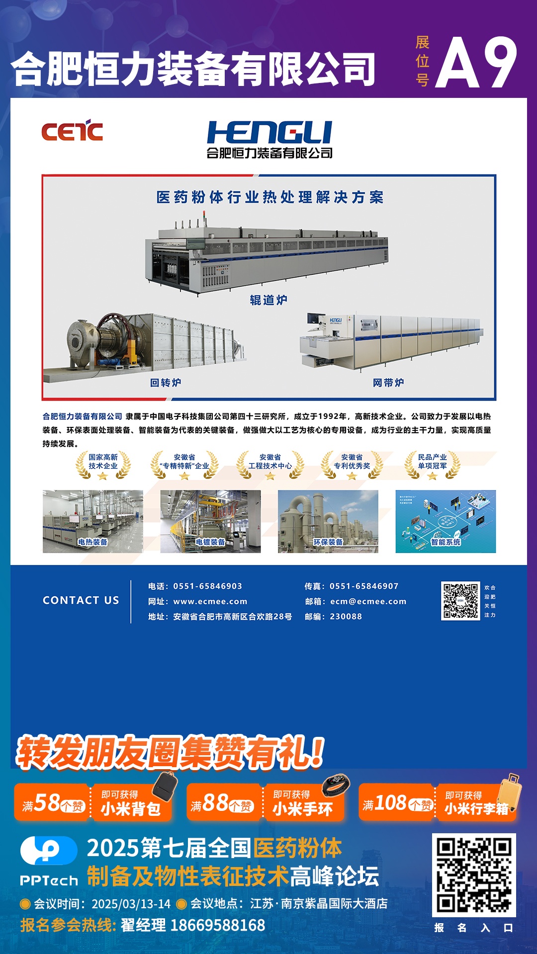 從第七屆全國醫藥粉體制備及物性表征技術高峰論壇組委會獲悉,本屆會議將于2025年3月13-14日在南京舉辦。合肥恒力裝備有限公司作為參展單位邀請您共同出席。
