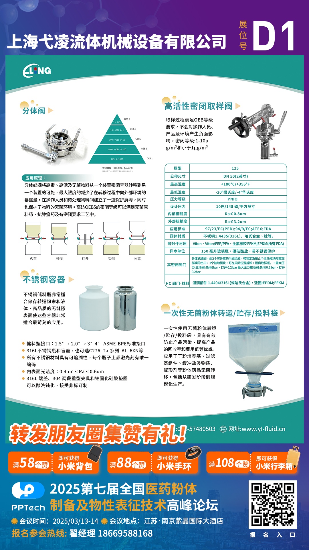 從第七屆全國醫藥粉體制備及物性表征技術高峰論壇組委會獲悉,本屆會議將于2025年3月13-14日在南京舉辦。上海弋凌流體機械設備有限公司作為參展單位邀請您共同出席。